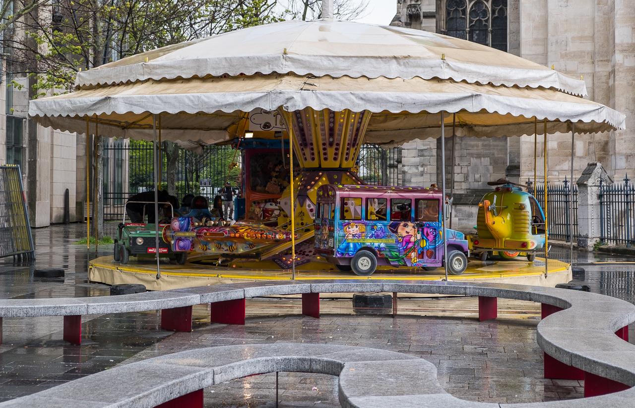 We came out to a mix of rain and sun and found our way back to the Metro, passing a temporary carousal which provided an interesting contrast to the front of the church. A truly interesting way to spend the morning.