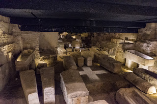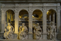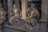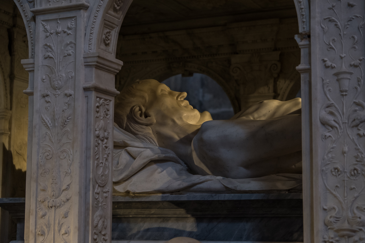 At the back, under the apse is the crypt, home to many more tombs, most not represented by a supine figure but rather an elaborate altar on a wall, or just a simple plaque. This is the most ancient level of the church, held up by short, elaborately carved pillars.