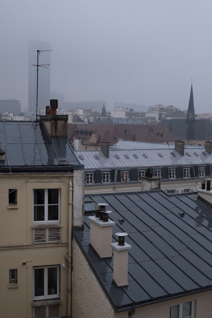 It started one night with mild but consistent sprinkles one evening when looking for restaurant. Then a threatening day. The morning we left Lisboa the weather changed completely and I think it’s still raining there today. But Paris came through and we had two beautiful days followed by a cloudy but no precipitation day. My luck was holding. Monday evening, a black sky that cleared before going out to dinner. Yesterday, cloudy here on the Left Bank, misting in Saint-Denis but broken clouds by the time we met Ruth later in the afternoon for a glass at a truly exception wine bar. By dinner time it was cloudy again, but not threatening.