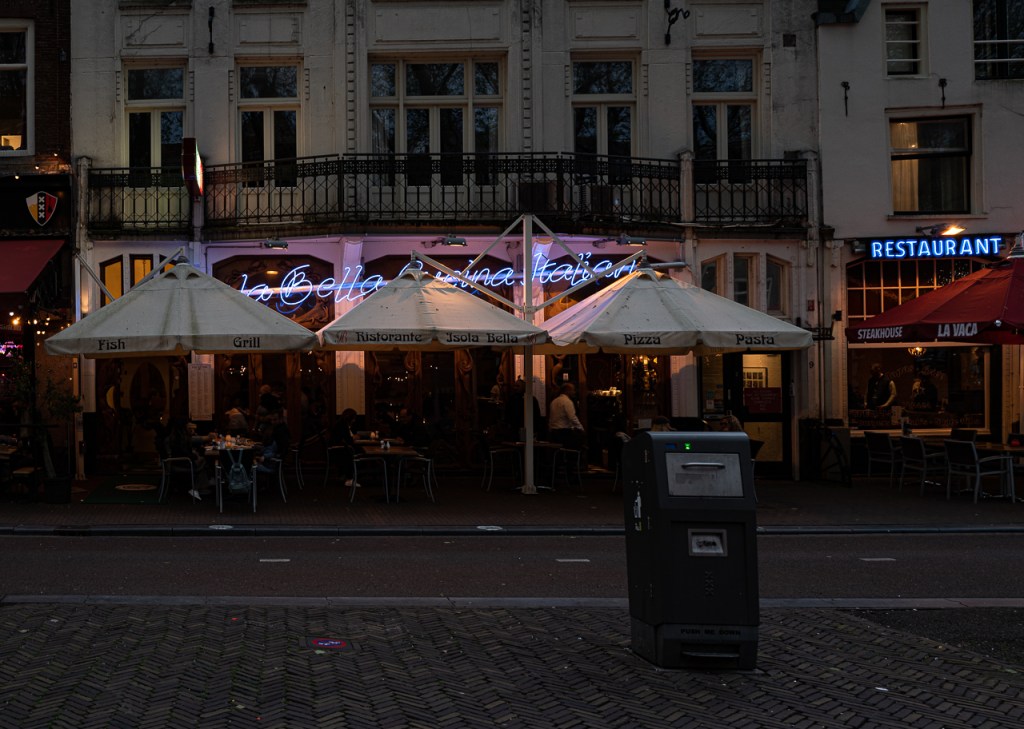 Life your average touristy cluster of indoor/outdoor restaurants, just about every food imaginable was available. American, Dutch, Italian, and even an intriguing Portuguese restaurant that didn’t make the cut tonight, but will certainly remain on the list. We decided to work our way around the square, reading menus and trying to find that perfect spot. Places that offered 6 or more cuisines were immediately cut because if you’re trying to make them all work, none of them are going to be memorable. About 3/4 of the way around, we found a side street and that was where we finally landed. One side of the street was easy to eliminate, all those establishments were drinks only. As we began our return trip on the east side, one place caught our eye – Isola Bella. Now, I realized I earlier stated that “no one wants Italian on their first night in Amsterdam,” but this being our second night, that bar was already cleared. And given that the menu offered at least 5 interesting options per person, the choice was clear – we went in and sat down.