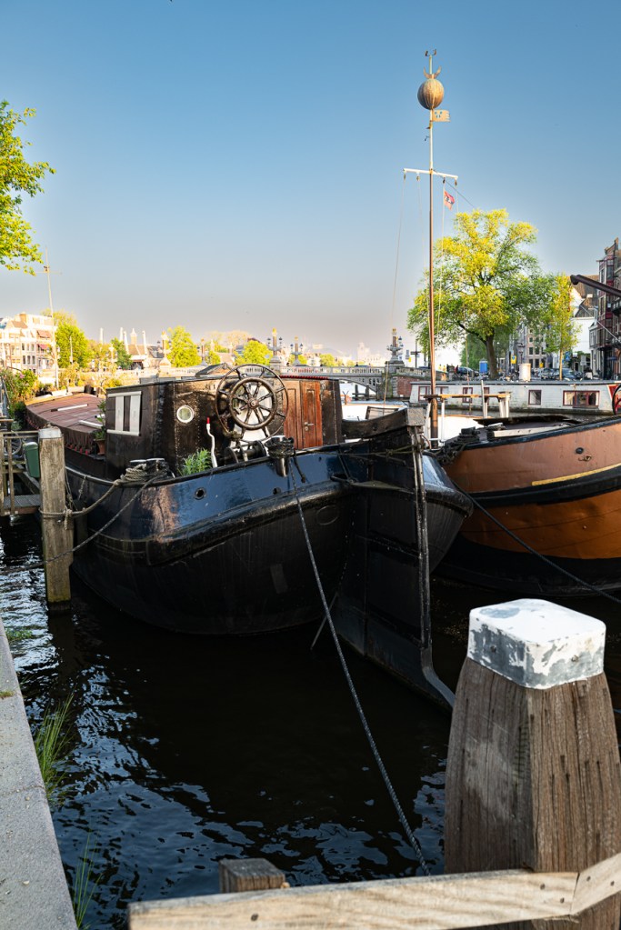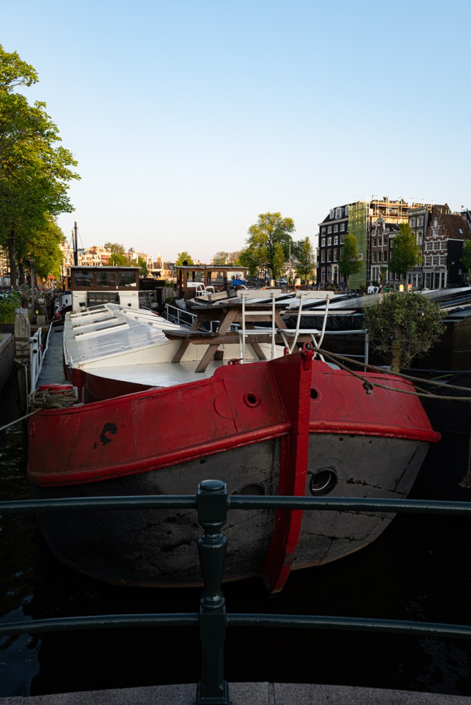 The sun goes down late here, being so far north, and on a warm late spring evening, if the weather is clear, a post-dinner walk is almost required. We strolled down to the Amstel, stopping to take a few photos of the sun-illuminated houses lining the river and of a few of the bigger houseboats docked on our side of the river. The perfect end to a perfect day.