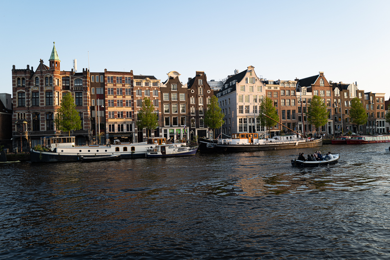 The sun goes down late here, being so far north, and on a warm late spring evening, if the weather is clear, a post-dinner walk is almost required. We strolled down to the Amstel, stopping to take a few photos of the sun-illuminated houses lining the river and of a few of the bigger houseboats docked on our side of the river. The perfect end to a perfect day.