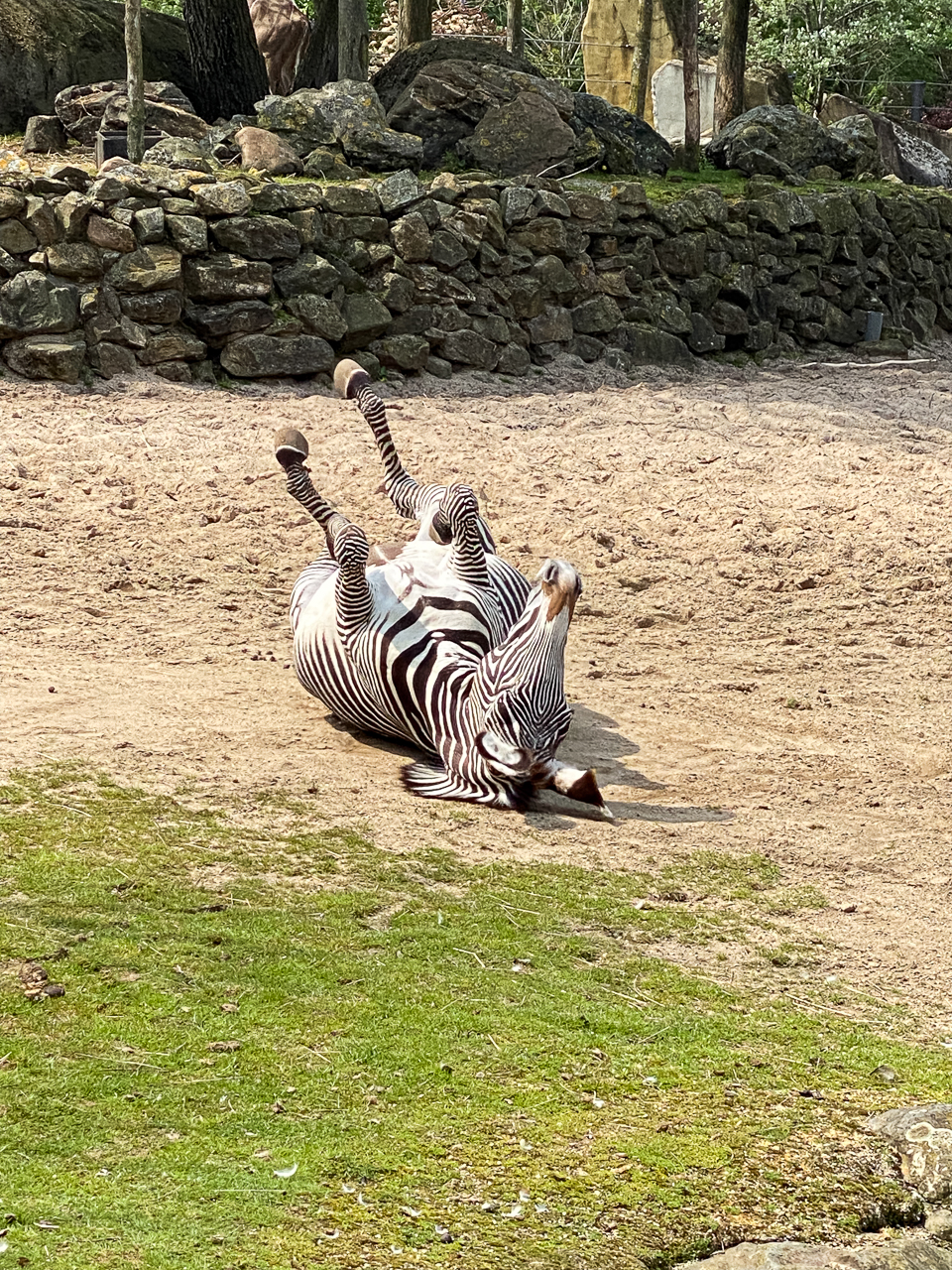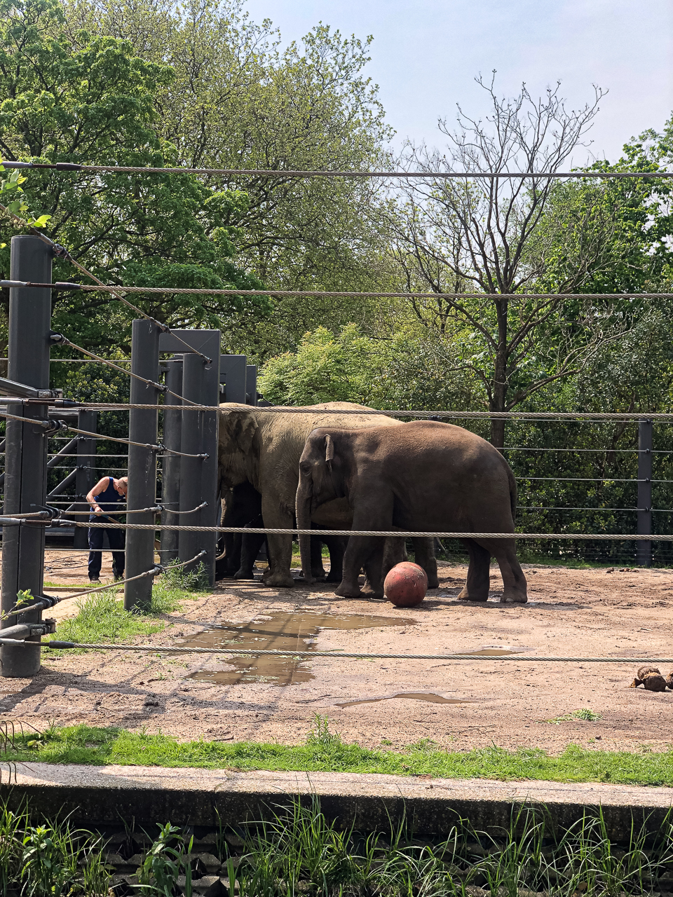 It being Sunday, and beautiful outside, it was crawling with families and kids. But the place is big enough to handle the crowd without making it hard to get around. The animal exhibits were thoughtfully designed, with many of them not very restrictive of the animals on display. Lemurs for example are free to wander wherever they want. We spent a lot of time watching the elephants playing a game with one of the workers. He’d spray them with a hose, they’d feign fear and run away, he’d turn off the hose, and they’d come running back to repeat the process. One juvenile among them walked into the pond in their enclosure and completely submerged himself.