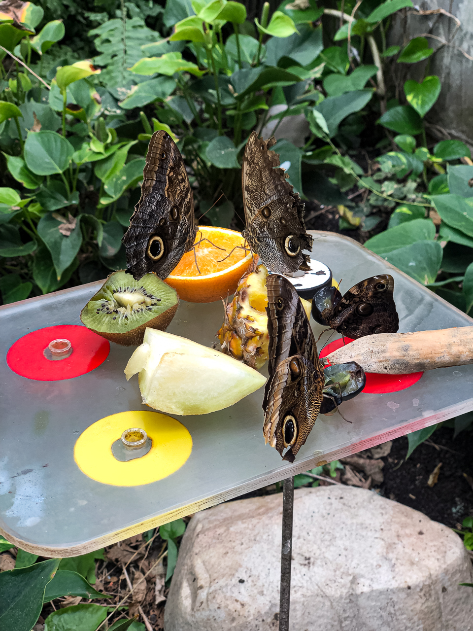 The biggest highlight for me was the butterfly pavilion. Effectively an indoor rainforest, it was chock full of moths and butterflies, flitting around and stopping to feed on slices of fruit placed here and there on tables. There is something genuinely peaceful about being surrounded by little fluttering gems.