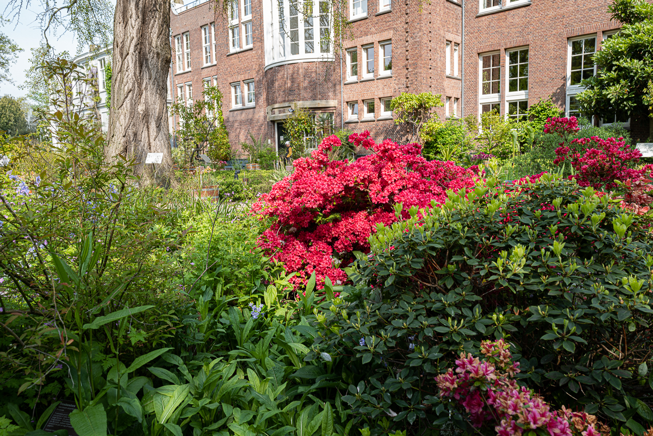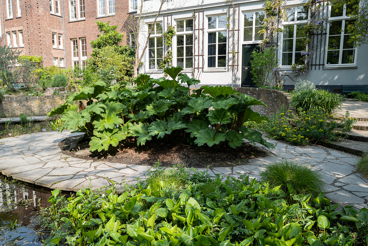First on the agenda was the Hortus Botanicus, Amsterdam’s botanical garden. One of the oldest gardens in the world, it was established in 1638 as a place for city doctors and pharmacists to grow medicinal plants, it moved to its present location in 1682. Its collection benefited from the colonial reach of the Dutch East India Company and grew rapidly to surpass other European gardens in not only size but also in the number of unique plants it held. Today it holds more than 6000 unique plants, including a 300-year-old Eastern Kape giant cycad and a 2000-year-old Agave alongside a 154-year-old water lily, Victoria, that opens every night at dusk. In addition to the extensive outdoor plantings, greenhouses provide examples of tropical rainforest, southwestern desert, and Cape climate biomes. A single coffee plant, Coffea Arabica, and two small oil palms in pots brought to Hortus Botanicus during the colonial era are recognized today as the parents for the entire cultures of these plants found across 4 continents.