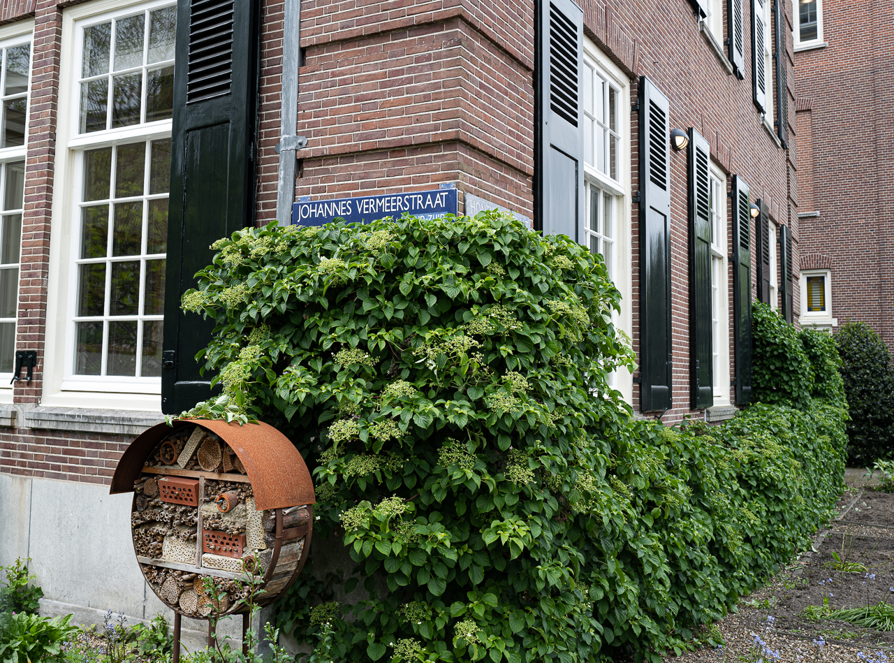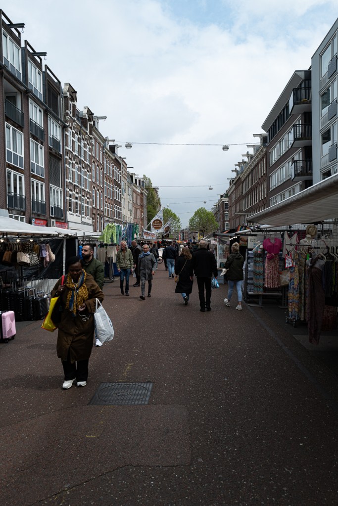 We spent a lot of time in the Delft outlet picking up some additional souvenirs and visiting with the young woman who runs it. She offered us a ton of interesting suggestions, and so after a trip back to the hotel to drop off all those Delft products, we headed south to the Albert Cuypstraat Market. A permanent street market with lots of pop-up restaurant options, fresh vegetables, fruits, vegetables, fish, clothing, and gifts, it was a bit of a mashup between Madrid’s Rastro and an American grower’s market. We split a Croque Monsieur variation for lunch and topped that off with a couple of mini-Cannolis and homemade fudge before heading west to the Museum Plein and a hot chocolate and chai in the little outside restaurant where we’d had the same last week. An American woman asked if she could share our table and we invited her to do so. She turned out to be another American here exclusively for the Vermeer show. We regaled her with our experiences before walking a couple of blocks to the west to have a stroll down Pieter Cornelisz Hoofstraat, Amsterdam’s luxury shopping street. Chanel, Hermes, IWC, Balenciaga, and Tiffany offered some very exclusive window shopping.