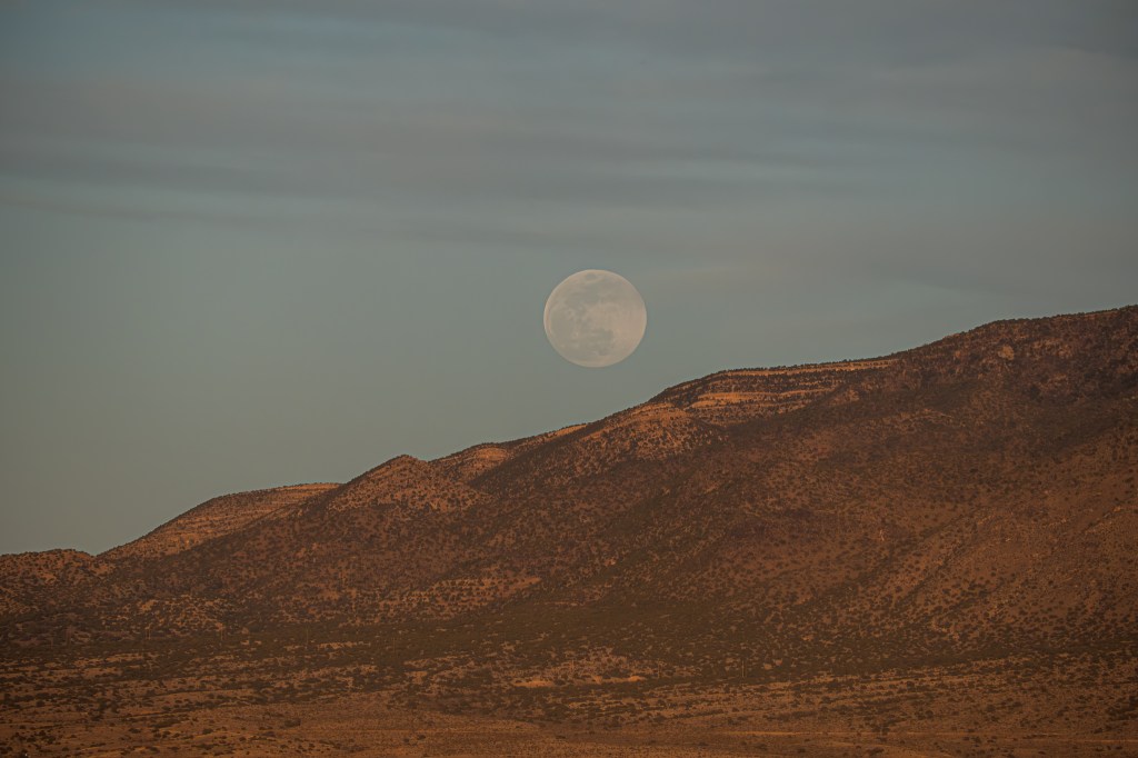 I try to head up the mesa on the eve of each full Moon to get photos of it rising over the Sandias. Of course, I am 100% dependent on the weather – sometimes it’s clear, sometimes it’s cloudy and sometimes it’s somewhere in between. The time of day makes it even tougher – if the rise is too early there isn’t a lot of contrast between it and the mountain and if it’s too late, the mountain landscape has to be blacked out to avoid over-exposing the much brighter Moon. This is why I always choose the eve of the night of the full Moon as it represents the best chance to balance the two.