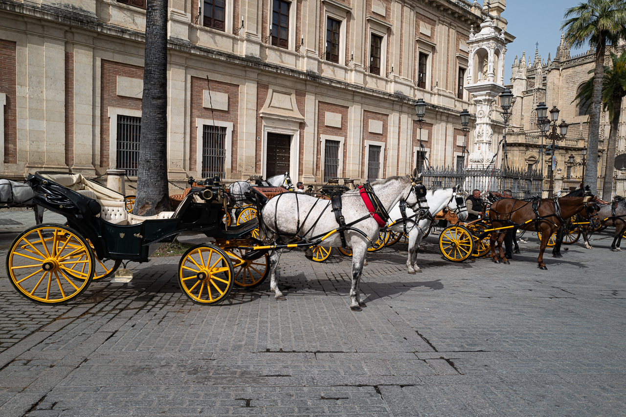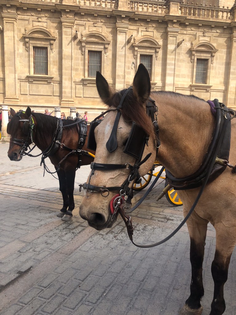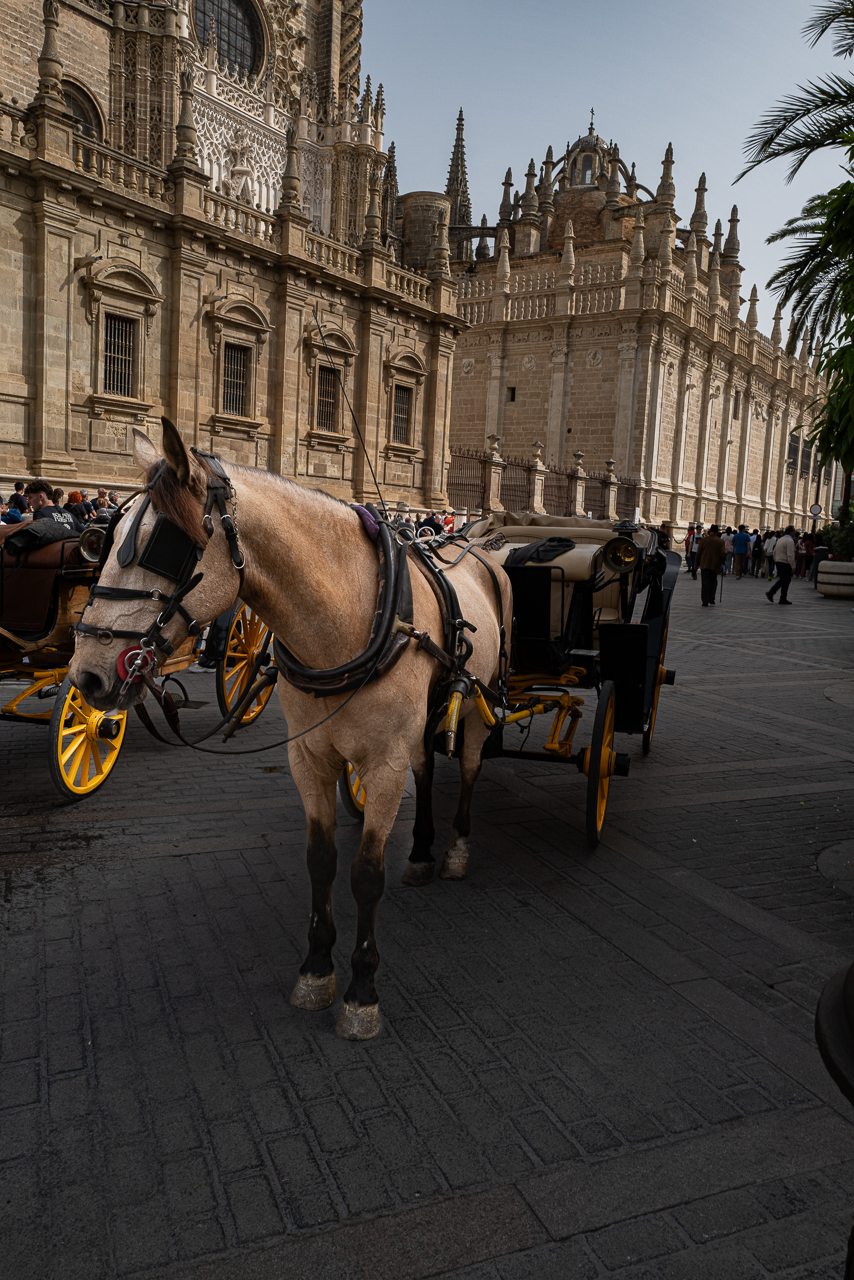 Mornings in the old city are very special. The restaurants are opening, the Common Swifts are wheeling overhead, having left their nests on La Giralda, the carriages are lining up looking for clients for a morning paseo, and tens of thousands of tourists are lining up at the gates to the Alcazar and the Cathedral for a morning entry. While we can’t be sure, it seems to me that the crowds here are bigger than in the past, particularly noticeable when you get behind a tour group that’s clogging the narrow lanes in the oldest parts of the town. As the sun rises, you appreciate why those lanes are so narrow – they give the least exposure to the sky and provide shade on at least one side of the street save for midday when the Sun is directly overhead. In this climate, the weather decides the architecture. It’s a pleasant time for a stroll so after coffee (where the barista now knows me by name) that’s what we did.