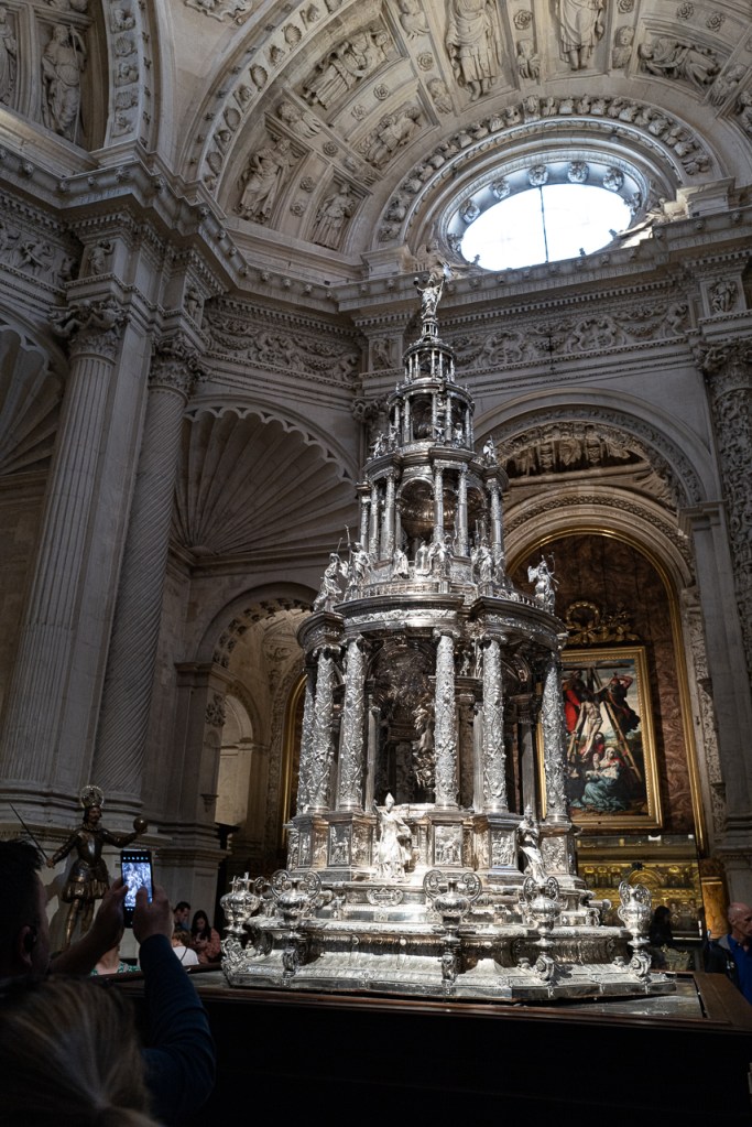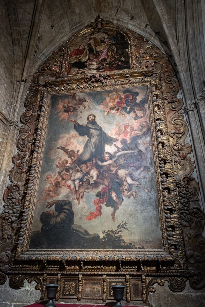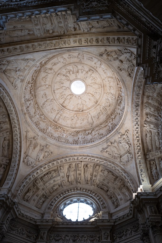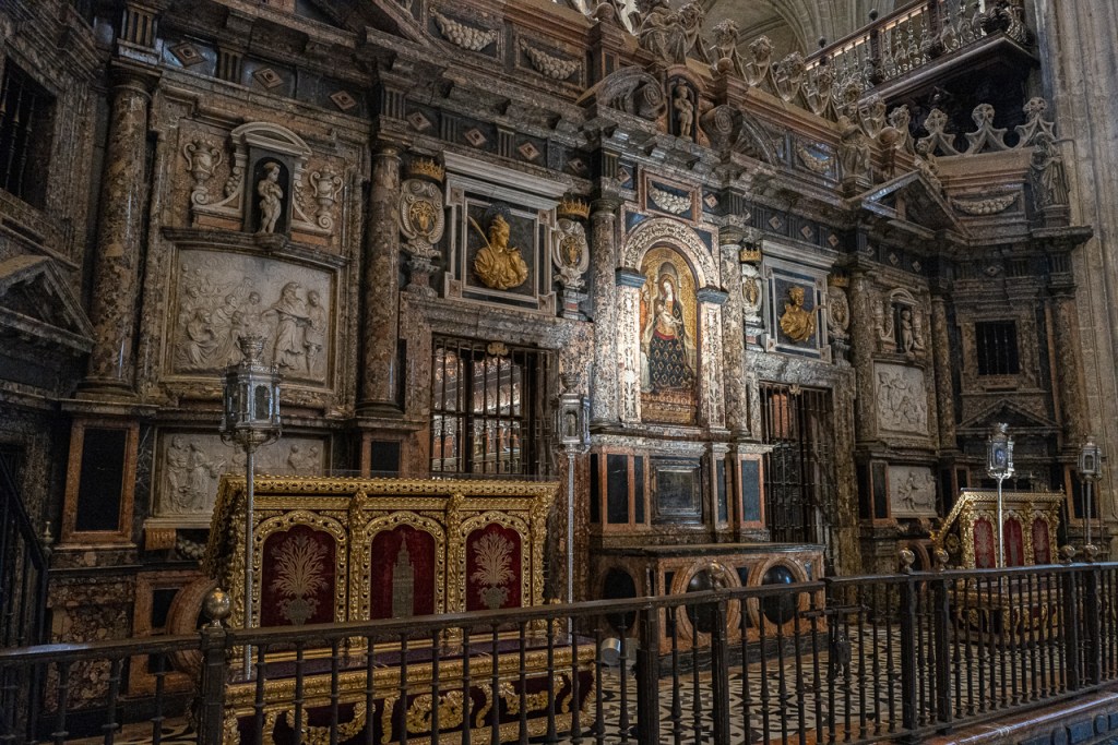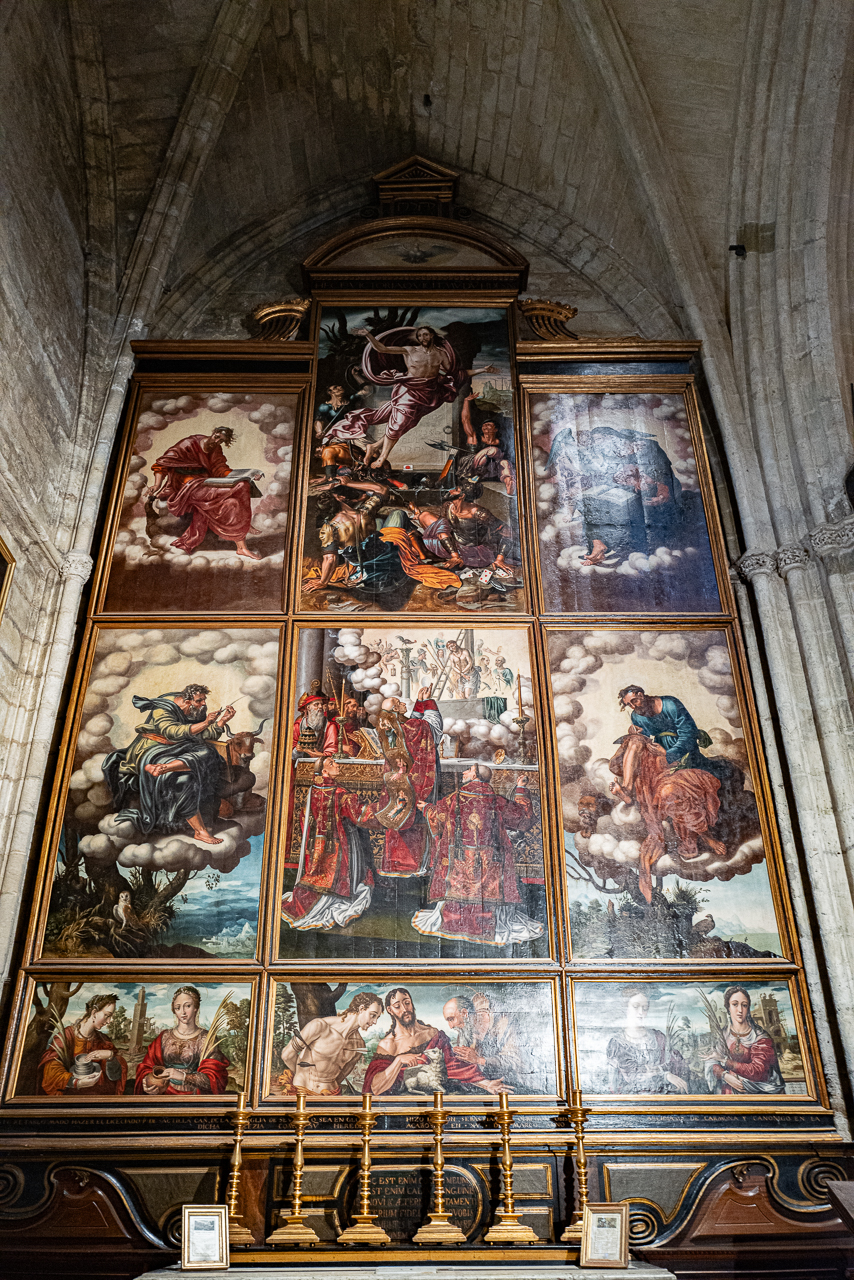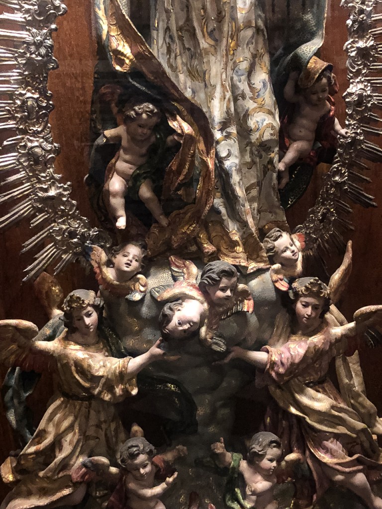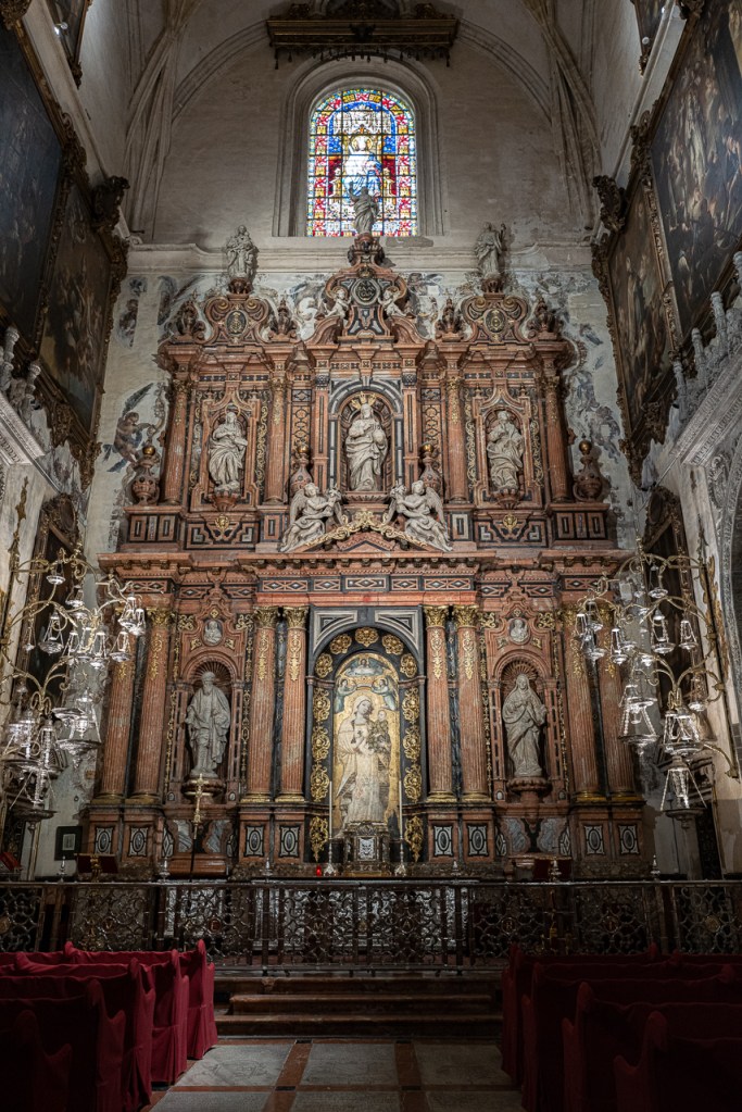 The cathedral is so big, and so full, and so awesome that it’s a lot to absorb, a lesson learned on our two previous visits. We decided to go today for two reasons – first, after coffee, we walked by and the entry line was really short. Second, I was on a mission to see the tomb of Ferdinand III and his “incorruptible corpse,” something I’d previously missed. To make sure that didn’t happen again, we did a very methodical search of the church taking photos and reading the information signs at every single chapel, something that took a solid hour. By the end, we realized we’d missed him again so I walked over to the information desk and asked the gentleman where he was.
