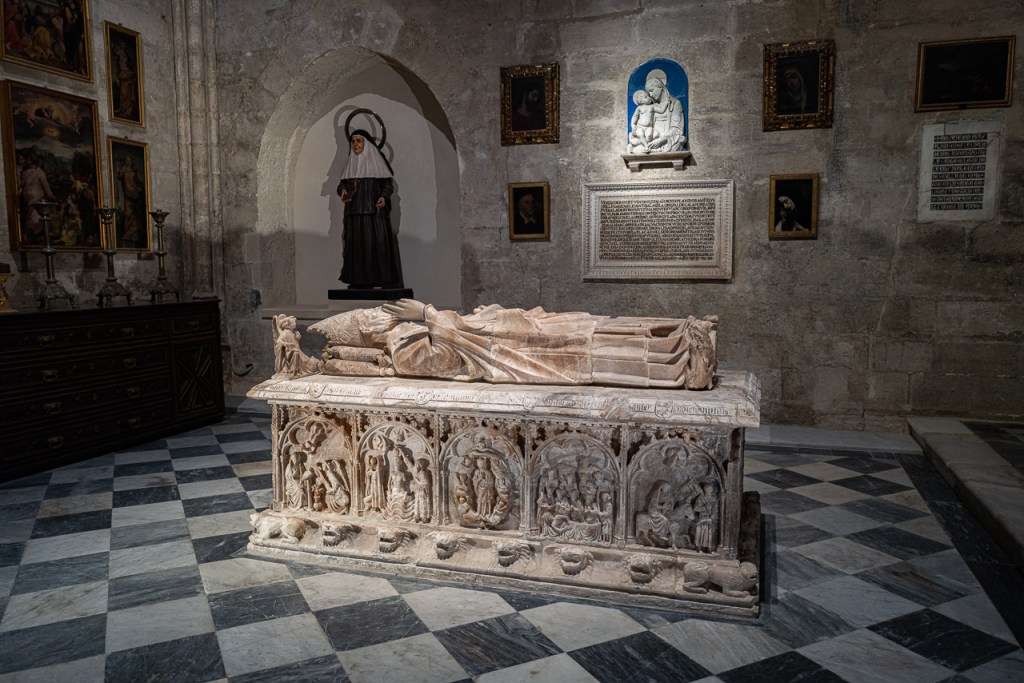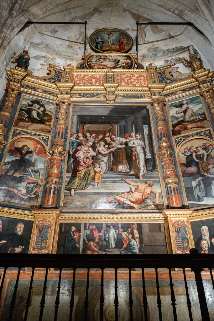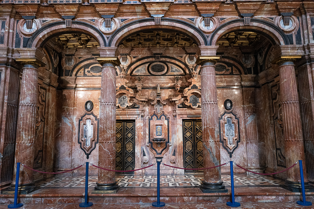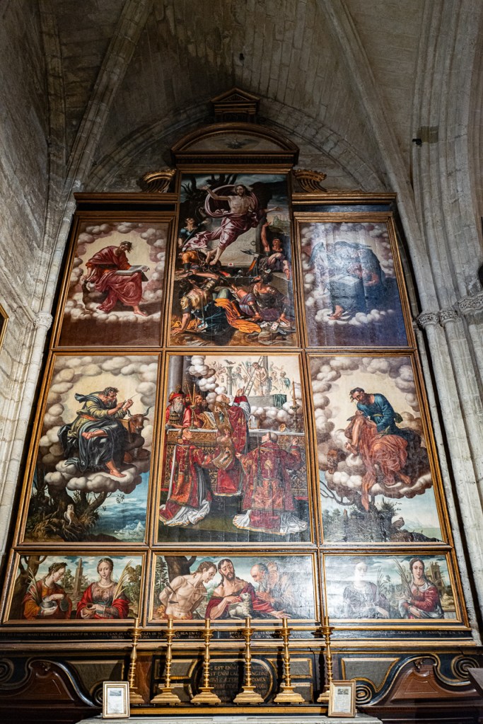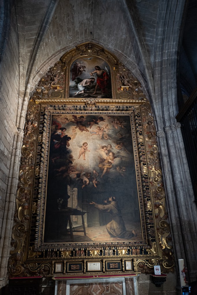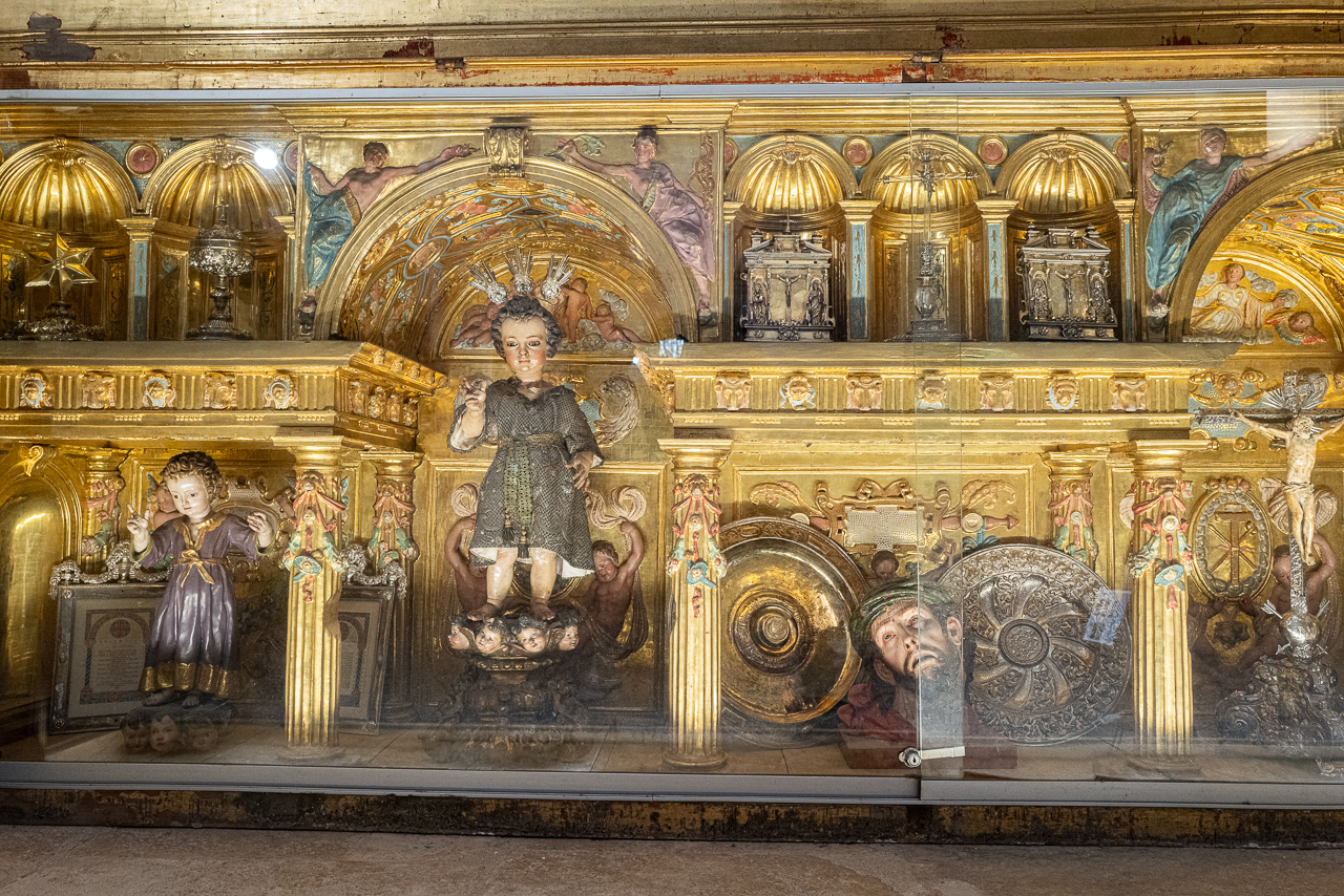 The cathedral is so big, and so full, and so awesome that it’s a lot to absorb, a lesson learned on our two previous visits. We decided to go today for two reasons – first, after coffee, we walked by and the entry line was really short. Second, I was on a mission to see the tomb of Ferdinand III and his “incorruptible corpse,” something I’d previously missed. To make sure that didn’t happen again, we did a very methodical search of the church taking photos and reading the information signs at every single chapel, something that took a solid hour. By the end, we realized we’d missed him again so I walked over to the information desk and asked the gentleman where he was.