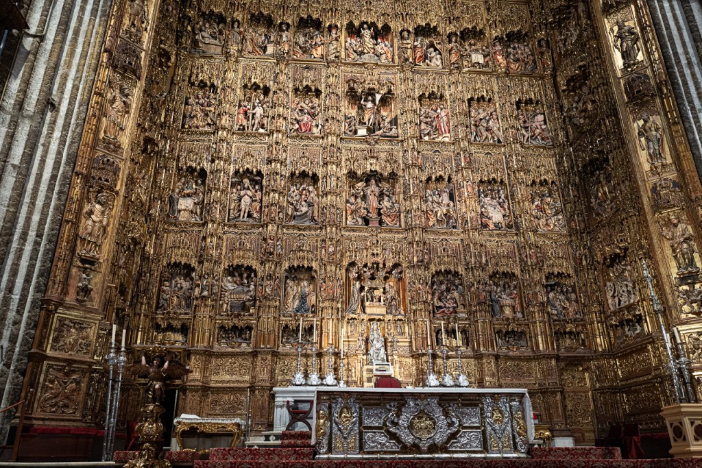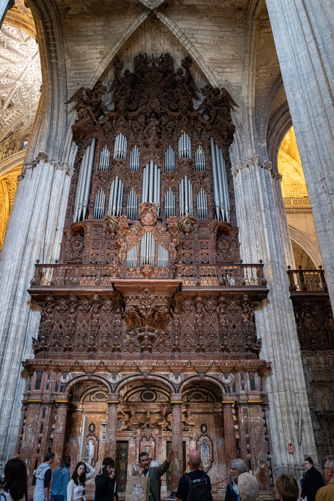 “The Cathedral of Seville is the largest Gothic cathedral in the world, and the third in size after St. Peter’s Basilica of the Vatican in Rome, and St. Paul in London. In 1987 it was declared a World Heritage Site by UNESCO.”