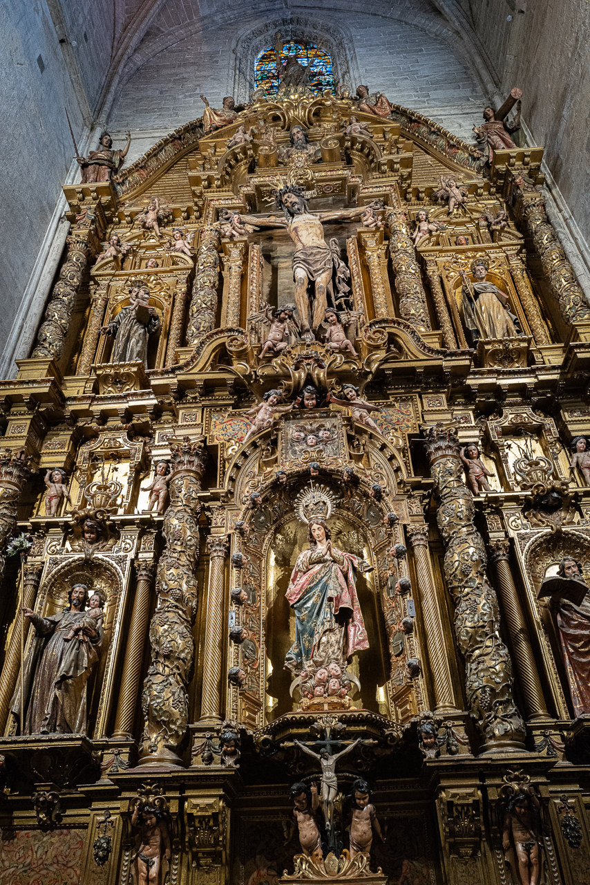 “Later, in 1401, the gothic expansion of Seville Cathedral was set in motion, with the idea of “Hagamos una Iglesia tan hermosa y tan grandiosa que los que la vieren labrada nos tengan por locos”, which loosely translates to “Let us build a church so beautiful and so grand that those who see it finished will take us for mad”. Major architects associated with these constructions were Enrique de Egas (initial stages), Juan Gil de Hontañón (1517-1526) and Juan de Castillo (completed the main facade in 1564). Several architects and designers also contributed over centuries, adding chapels, decorations, and other elements.”