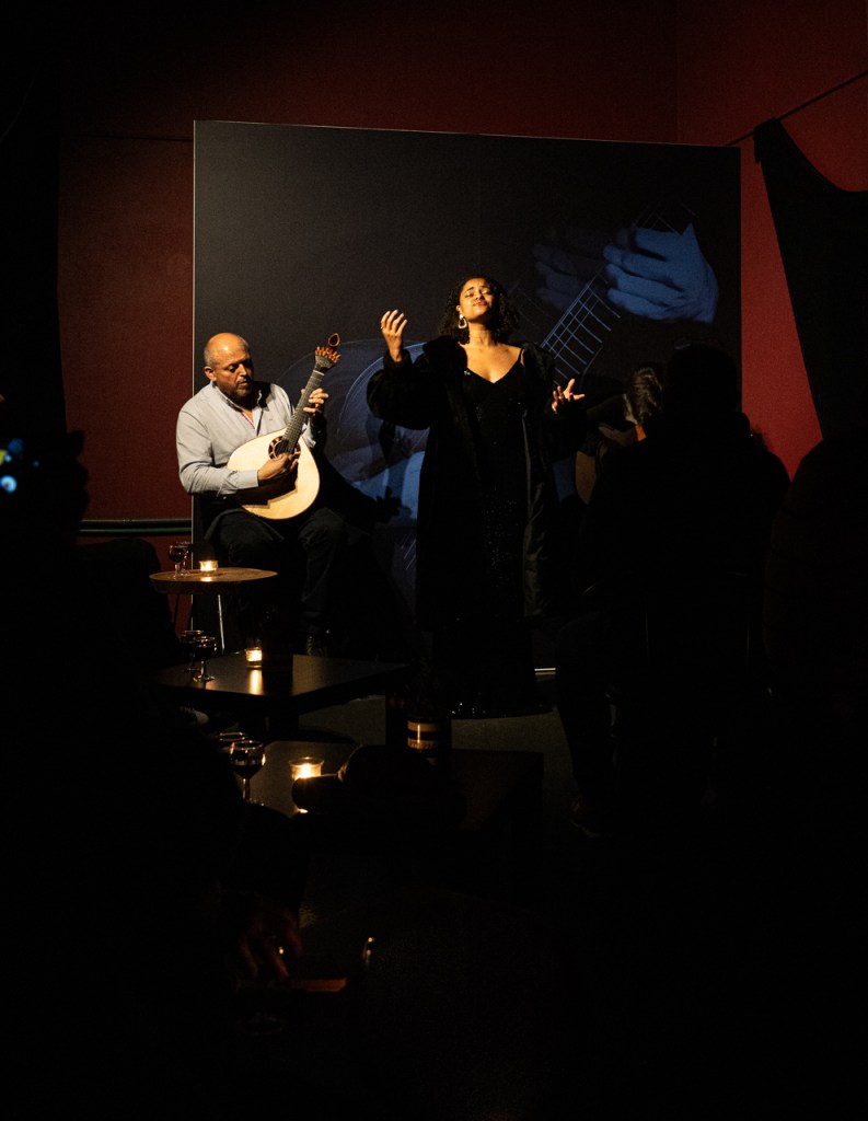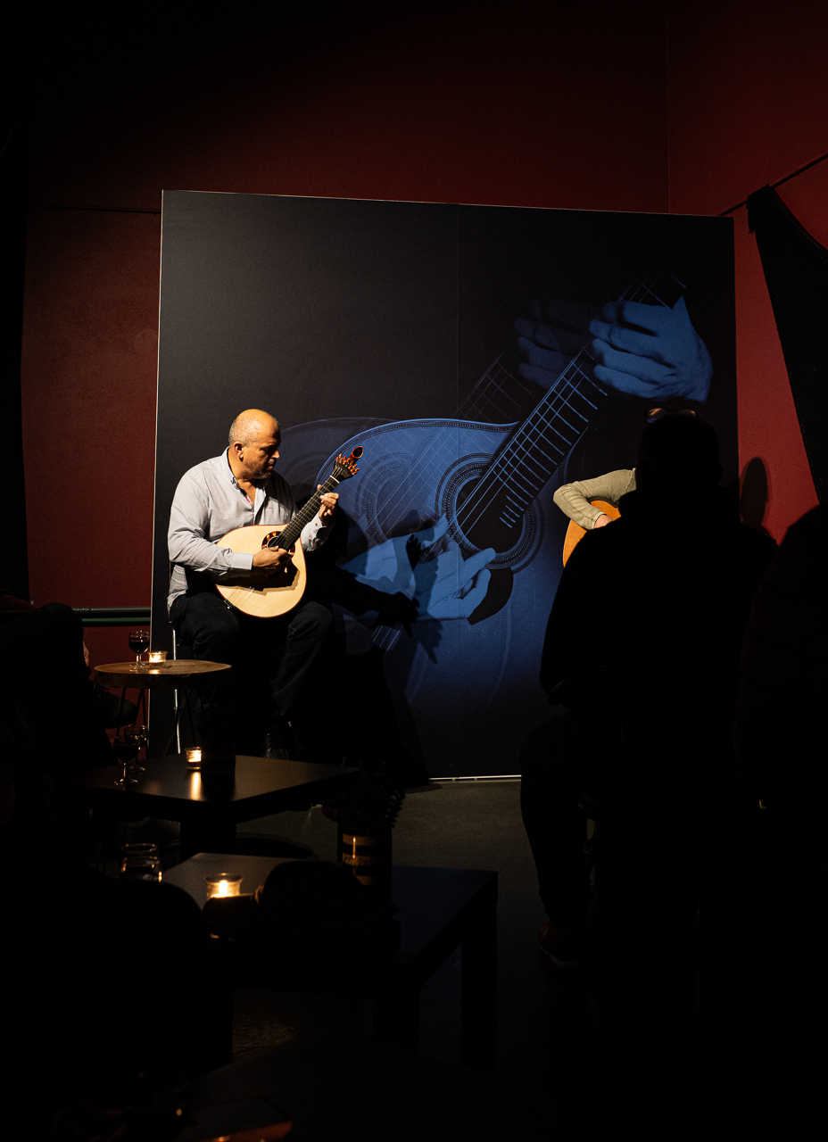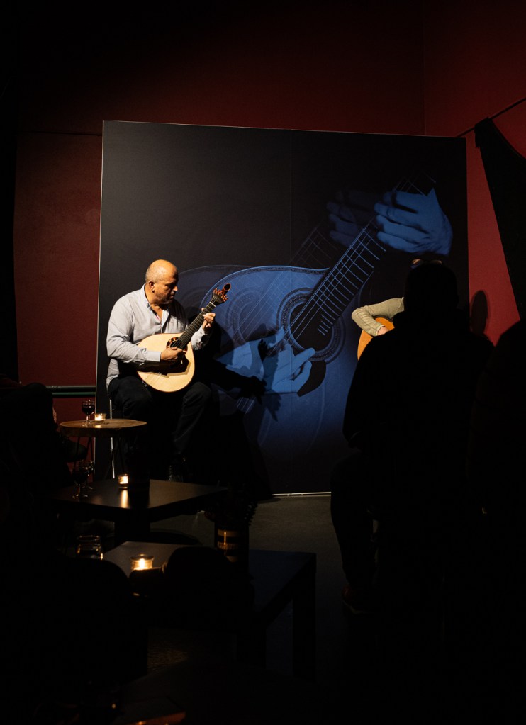 We arrived early, but not early enough, and took 2 of the last 4 seats. Given the size of the hall, the only downside was the heads obscuring the classical guitarist. Each ticket came with a glass of Port Wine and once everyone was served the lights went down and the show began. I was a bit surprised to see that the ticket taker was also playing the Portuguese Guitar.