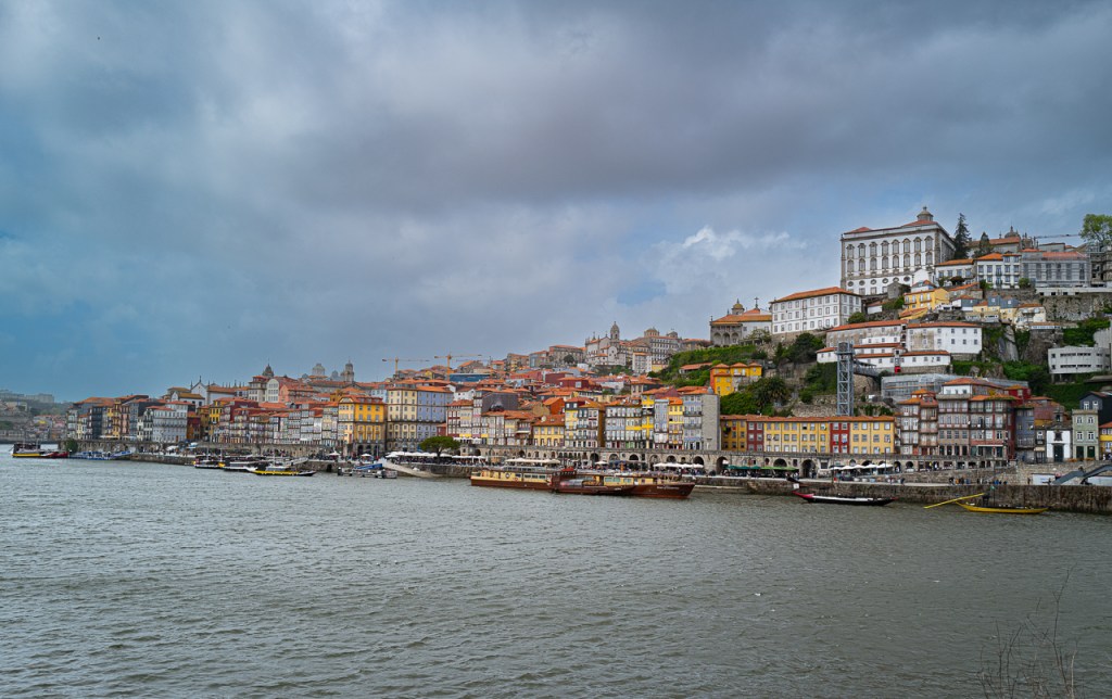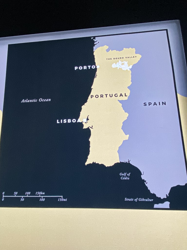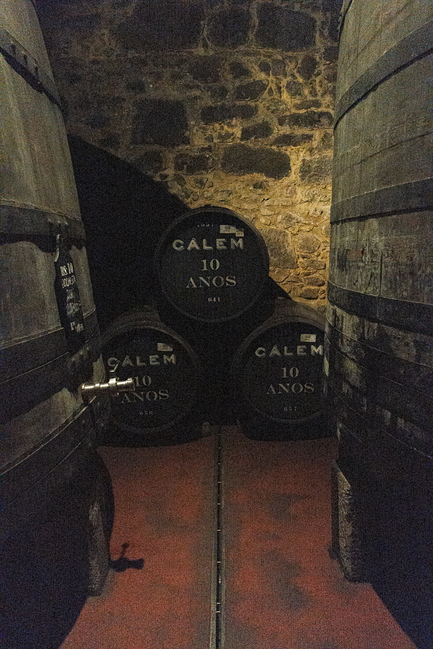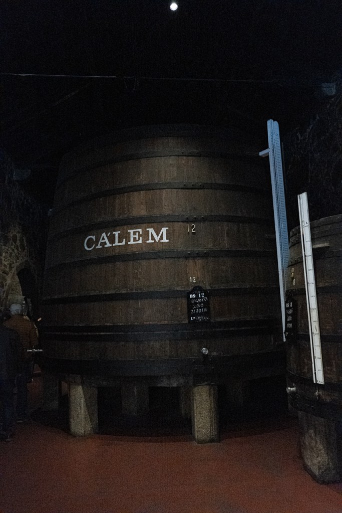 After lunch, it was time for some serious touristing – a tour of the Calém Port Wine Lodge across the river in Nova Gaia. We know that route pretty well now, and how to avoid an unnecessary up and down. Walking through the tunnel above the waterfront, we simultaneously commented on how wonderful it was to be walking on a totally flat surface. We were able to stretch out a bit as though we were doing our regular morning walk at home, a feeling we’d nearly forgotten. Gratefully the level walking continued across the river and to the Calém site despite being buffeted by gale-force winds coming up the river from the Atlantic which has been on a “Severe Coastal Event Warning” for the past few days. No kidding.