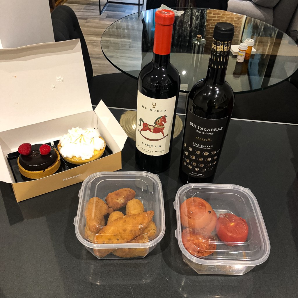 There is perhaps only one grocery store in the world better than the Puerto del Sol Corte Inglés and that’s La Grande Épicerie in Paris. You enter the regular grocery through an incredible gourmet section that features all kinds of ready-made dinners, a deli, a wine cellar, and a fancy patisserie. We tried to ignore that and went about our regular shopping. On the way out we thought it might be a good idea to treat ourselves to a take-out dinner after all the restaurant nights of the last two weeks. Given that the store is so close to our apartment, we went home unpacked the groceries, turned around, and went right back. Cod, chicken, and ham croquettes along with grilled tomatoes for two – 8€. Single-serves of chocolate and lemon cheesecake – 9€. Two bottles of Portuguese wine – 34€. 51€ for an amazing meal. 20€ less than a typical dinner out in Porto. With plenty of wine for the week.