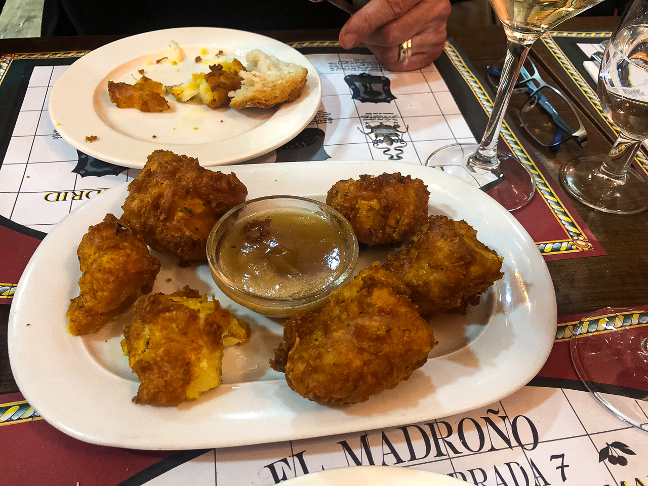 Not literally “fish balls,” but rather Delicias de Bacalao, deep-fried cod fritters served with Madrone sauce, made from the fruit of the Madrone tree and a bit like apple sauce. After we discovered them, we always made it a point to visit on each subsequent trip.