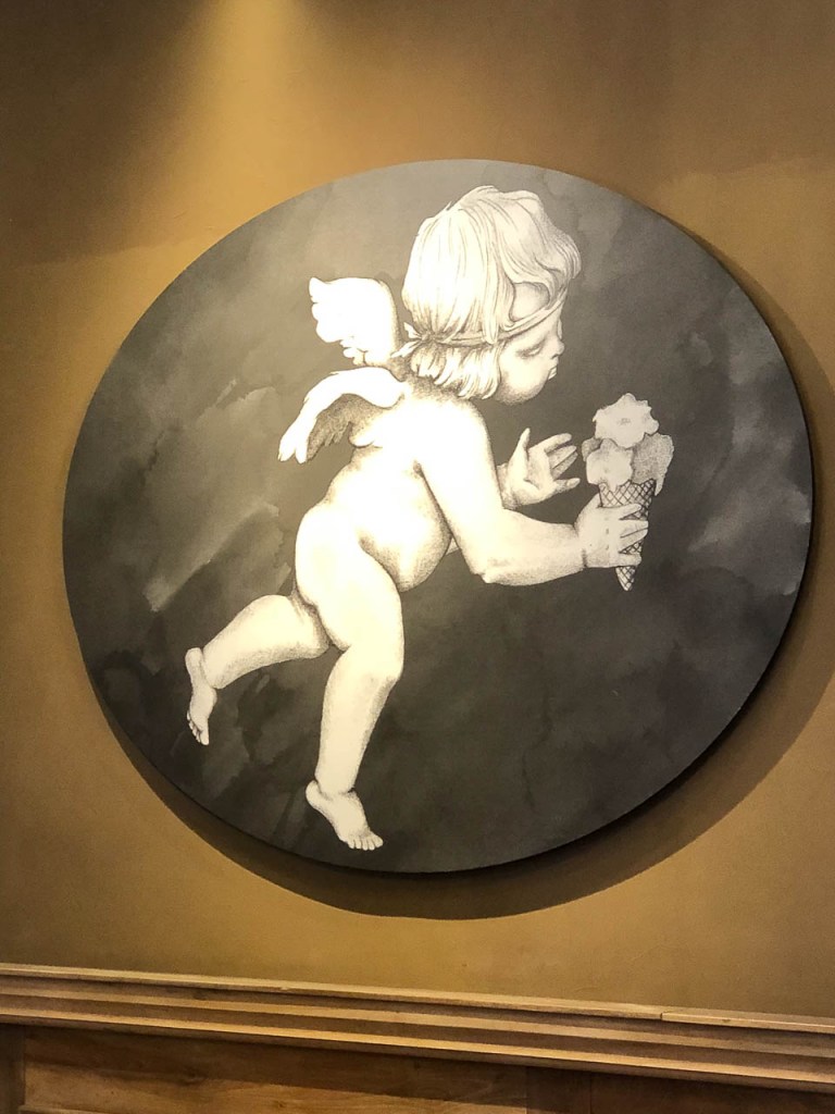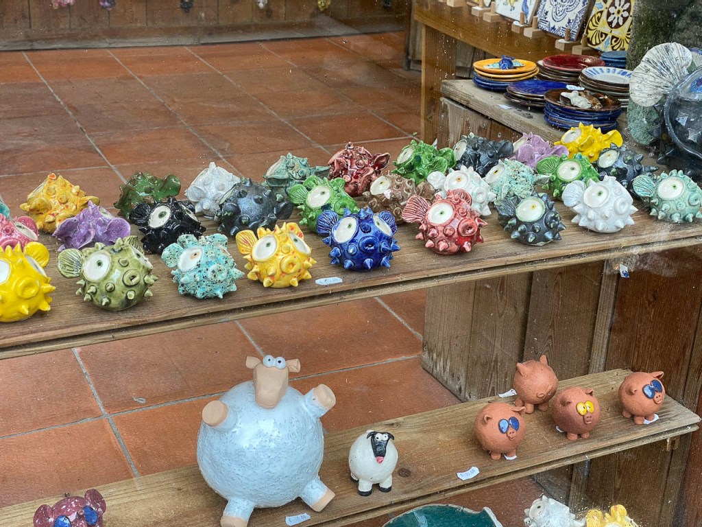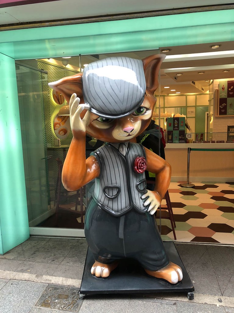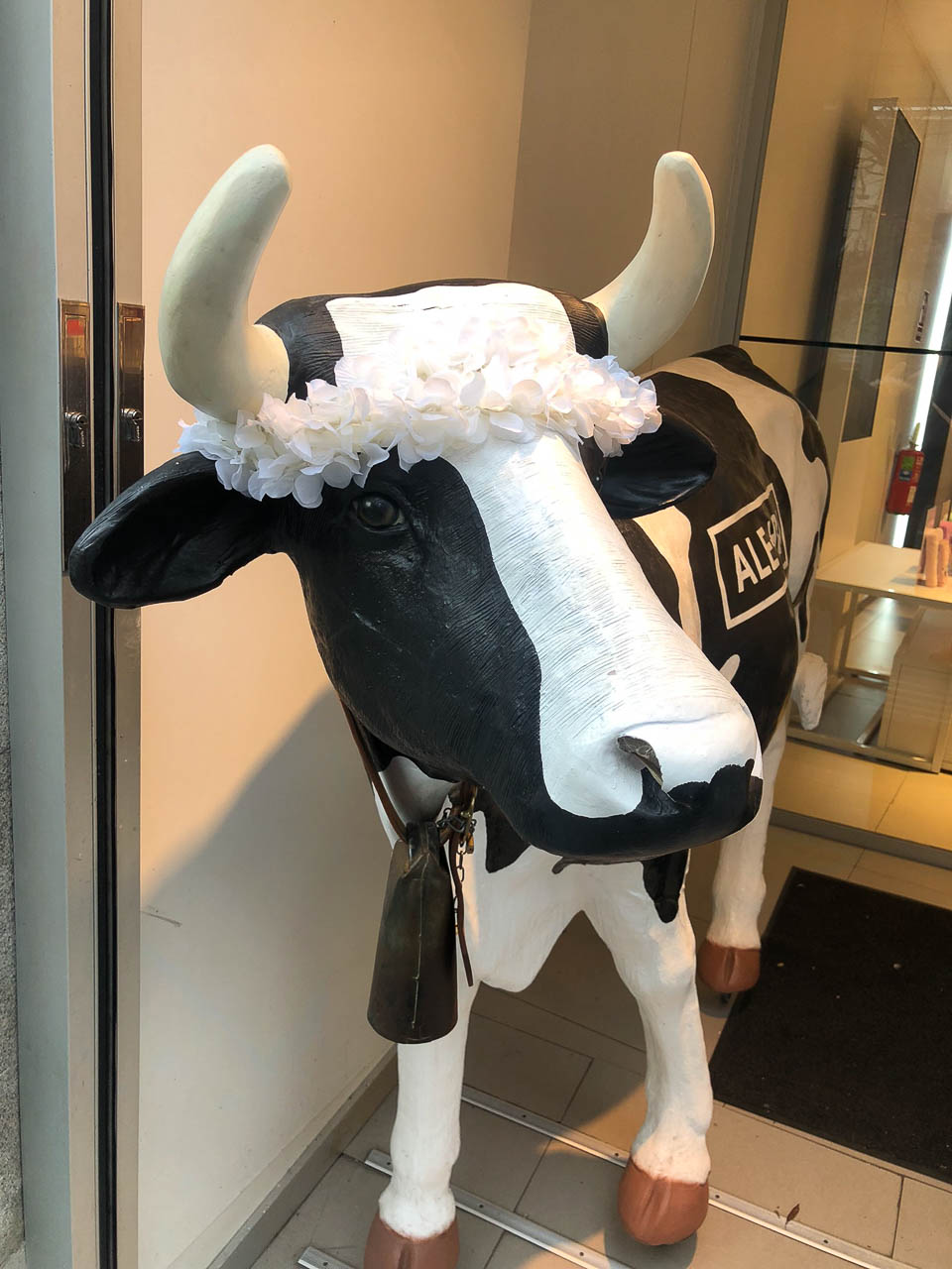 Special for us are the cows. They stand in front of every Alehop, a miscellaneous gizmo store, and are always decked out for the weather and the season.