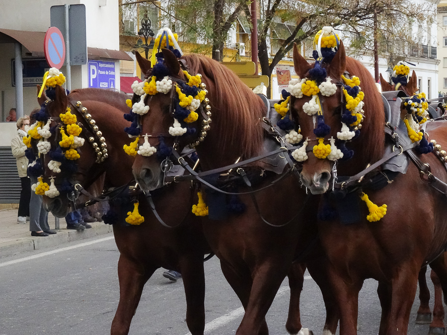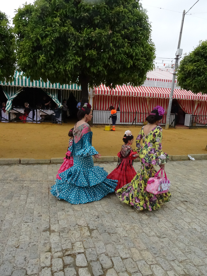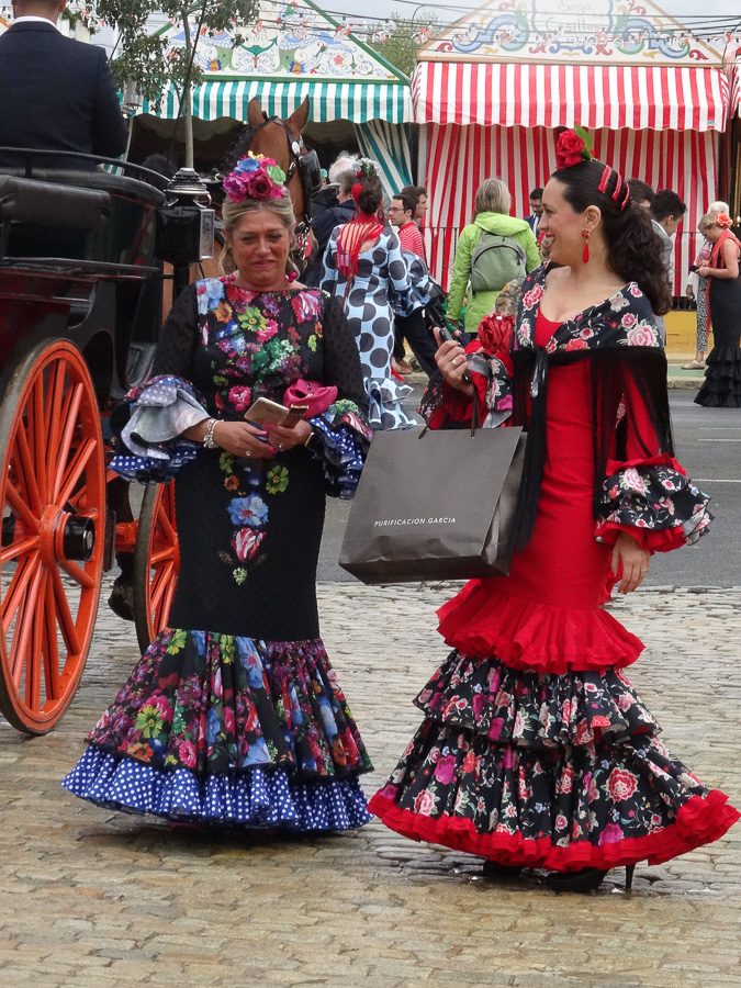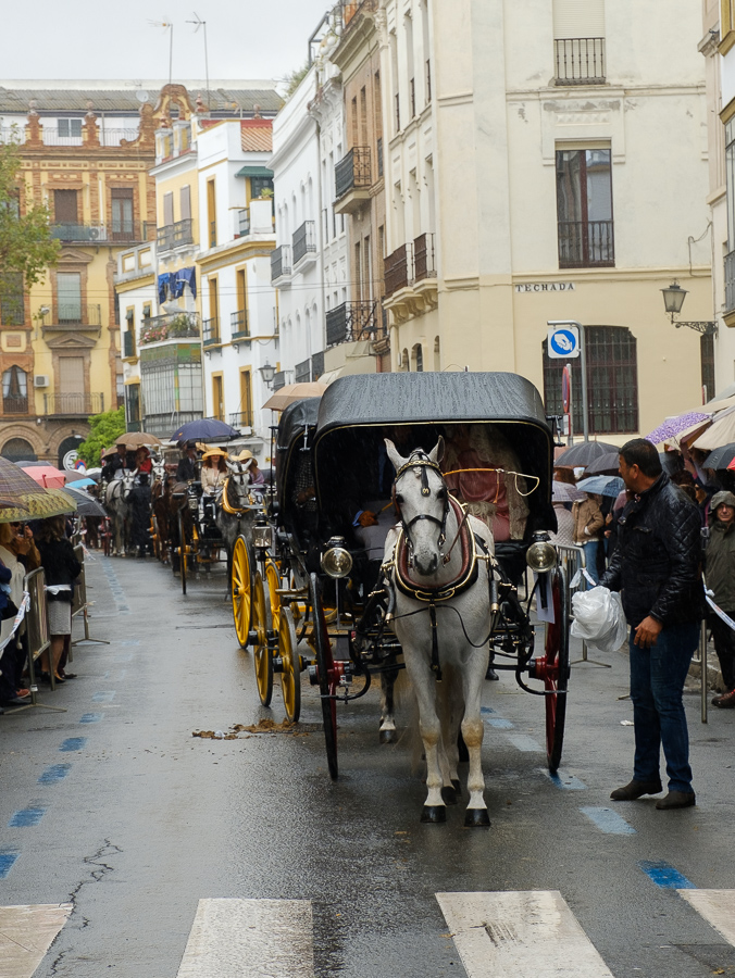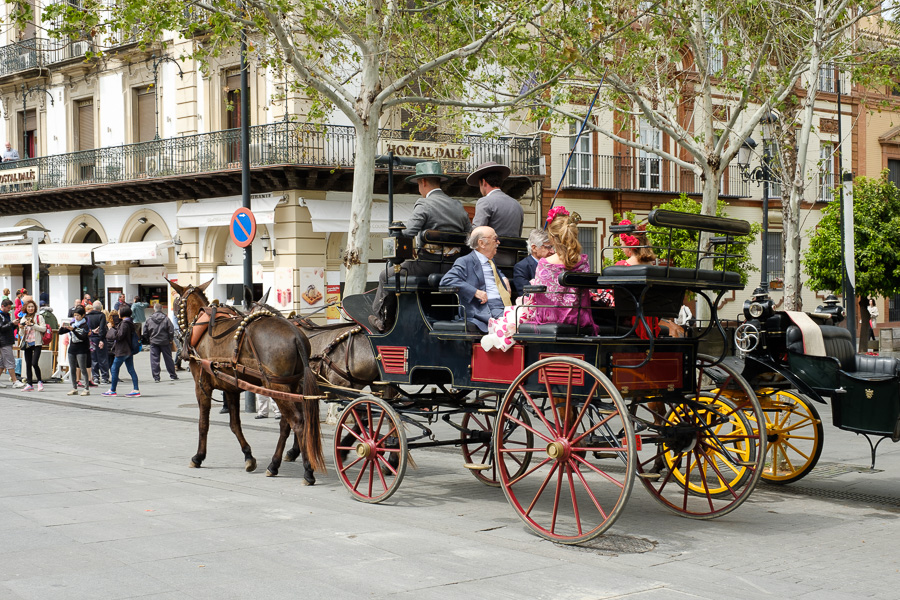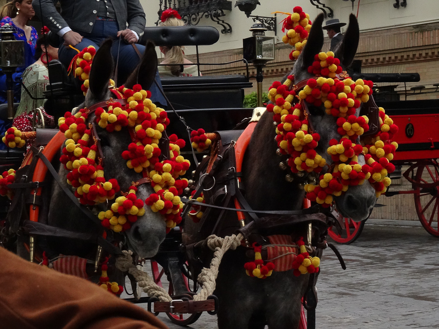 Held for a week in the period following Semana Santa, the fair dates back to 1846. Originally a livestock fair conceived by two Basque councilors to Queen Isabel II, it received its royal charter and the official fair was held on 18-April-1847. Today it’s more of a spectacle for Sevillanos, celebrating the culture of Andalusia. An amazing affair, each night everyone gathers at the fairground on the Triana side of the river in casetas, little houses organized by family or profession for an evening of conversation, tapas, drinking and flamenco dancing. During the week the streets are filled with women and men in tradition garb, and an ongoing calendar of events for riders and carriages.